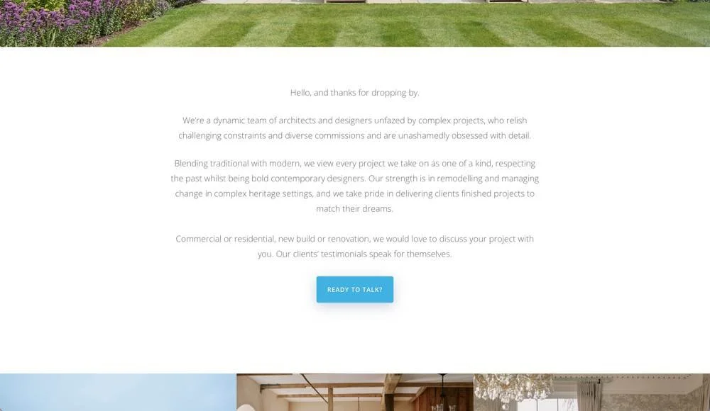New website copy for a Cotswold-based studio. I helped hone down their messaging and developed a tone of voice that captured them perfectly.